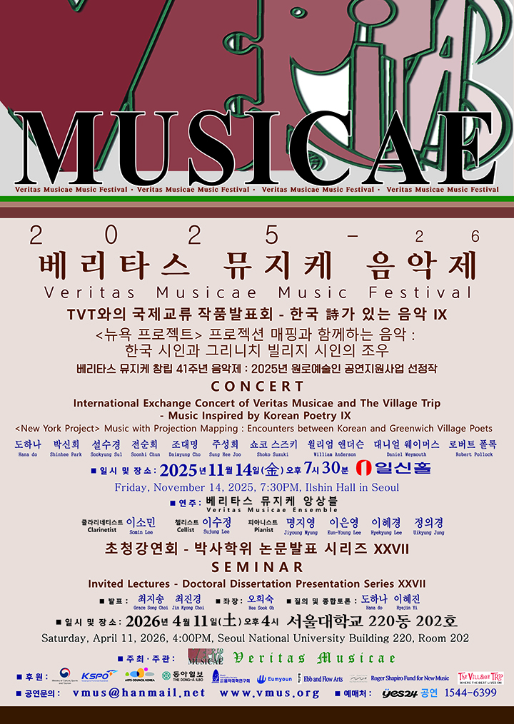 - 베리타스 뮤지케 음악제 - TVT와의 국제교류 작품발표회 한국 詩가 있는 음악 IX : <뉴욕 프로젝트>